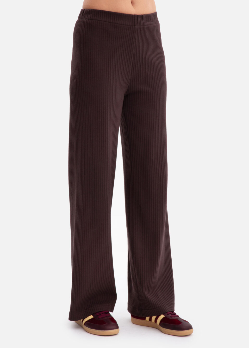 SPODNIE Z DZIANINY PRĄŻKOWANEJ – GORZKA CZEKOLADA