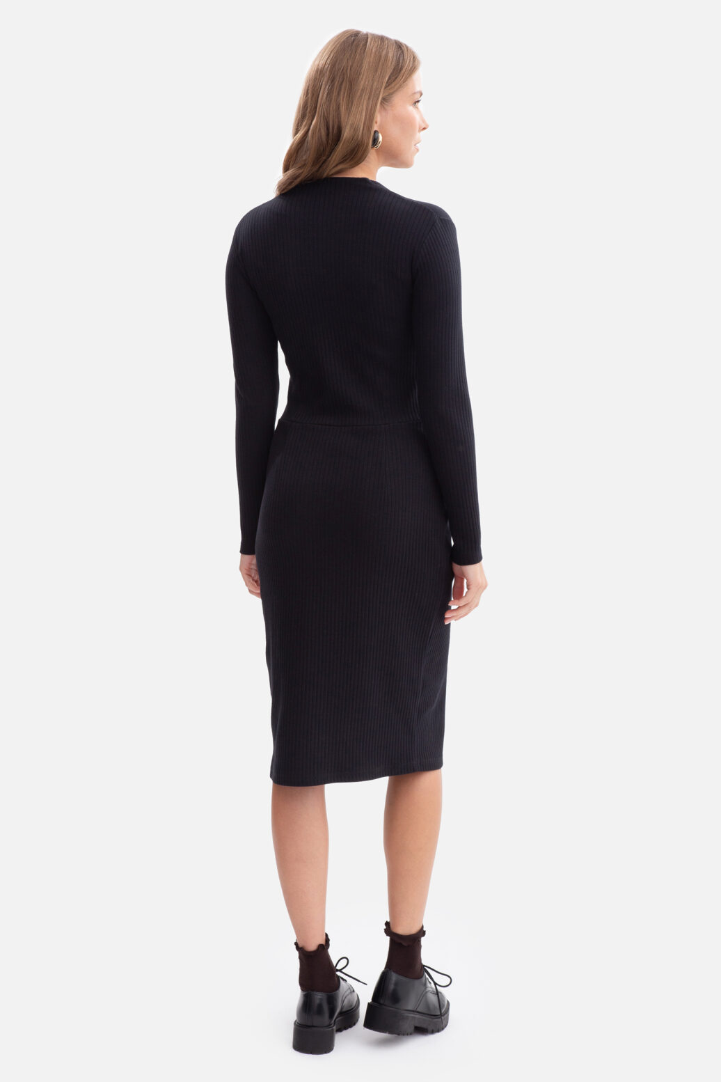 SUKIENKA MIDI Z DZIANINY PRĄŻKOWANEJ Z DEKOLTEM – CZARNA